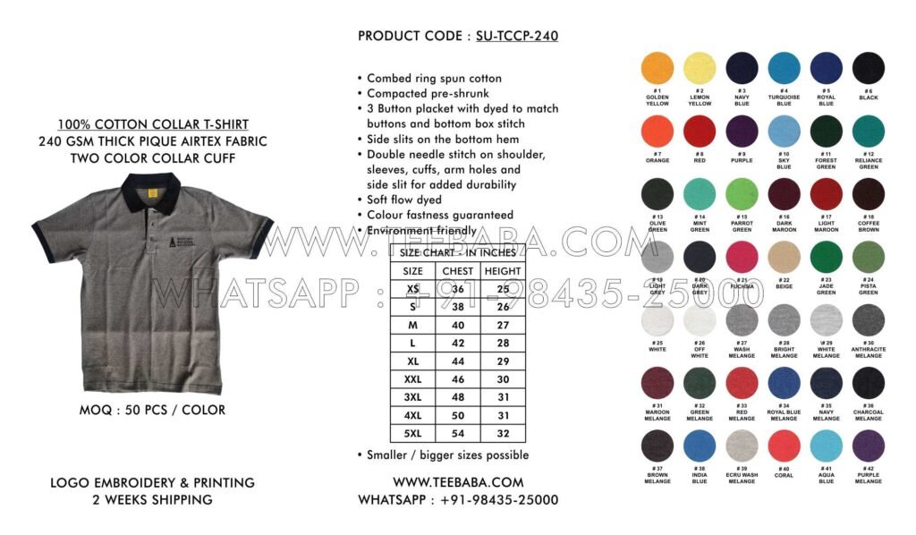 Teebaba is one of India’s leading manufacturers of collar polo t-shirts.