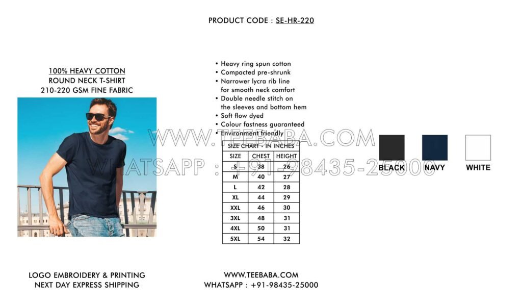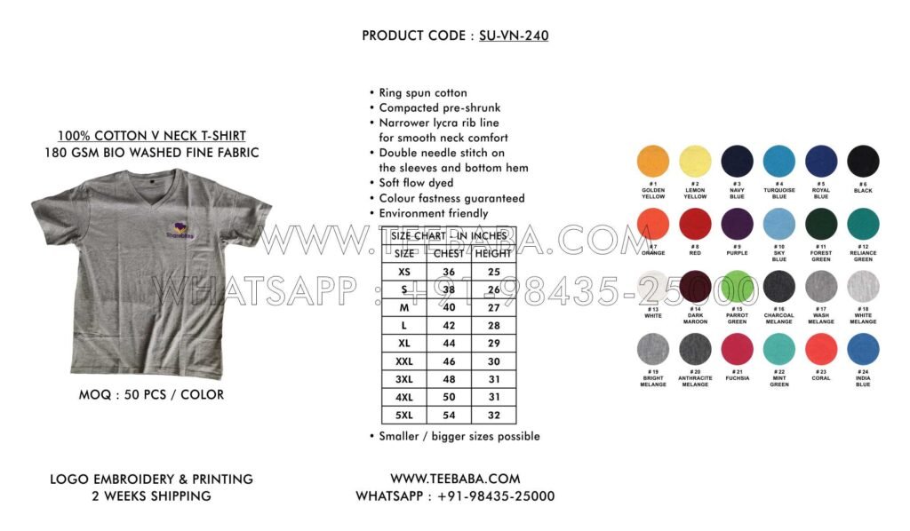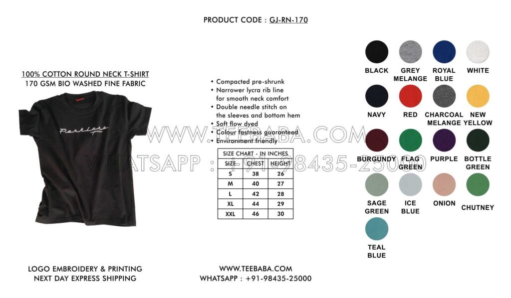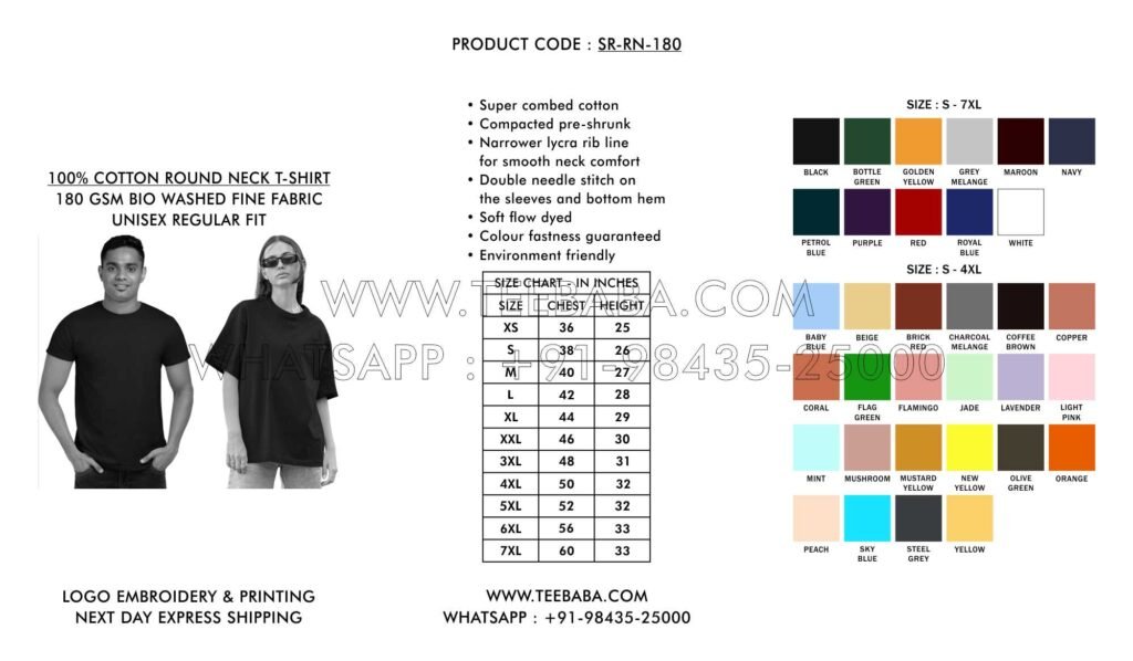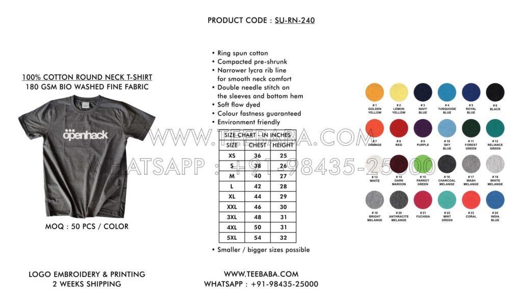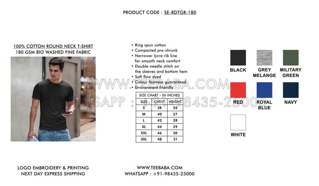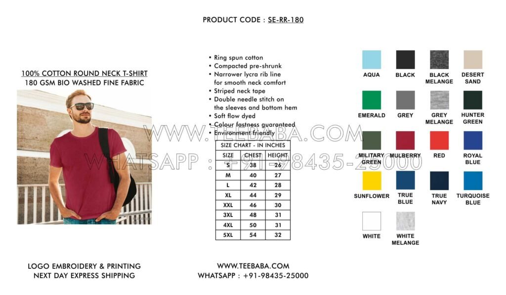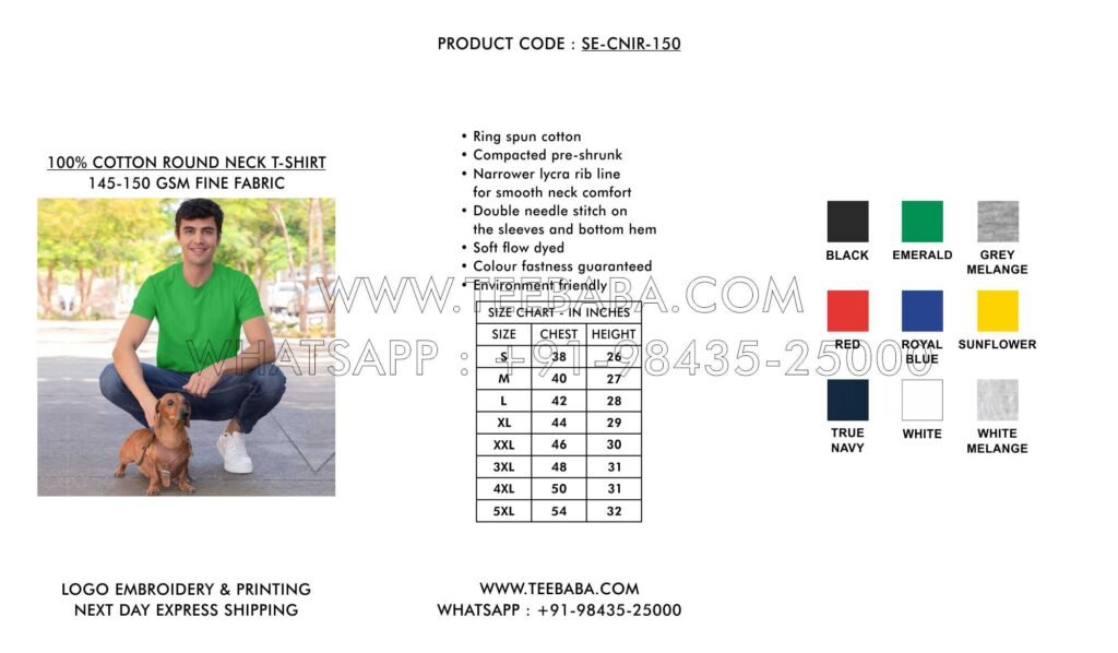 We ship from Tirupur – the t-shirt hub of India. Shipping methods (courier, transport, air, sea, or surface) are finalized in consultation with the buyer. We ship across India and worldwide.